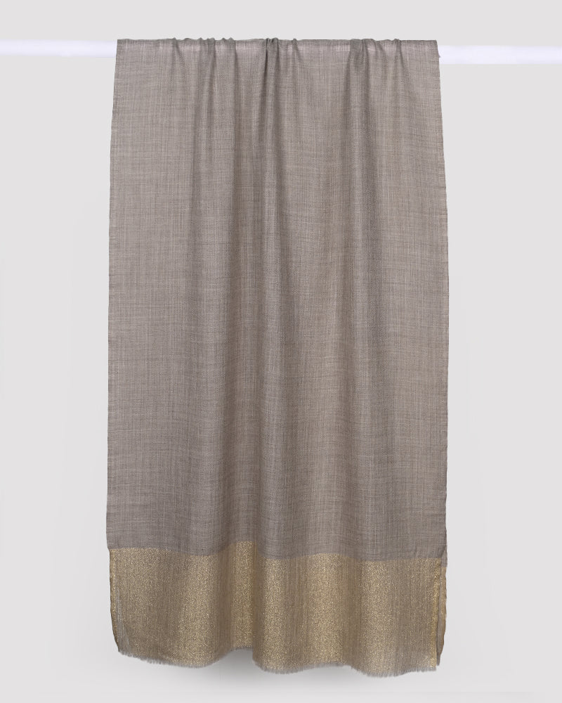 Golden Pashmina Wool Zari Palla Stole - 70x200 cms / Gold