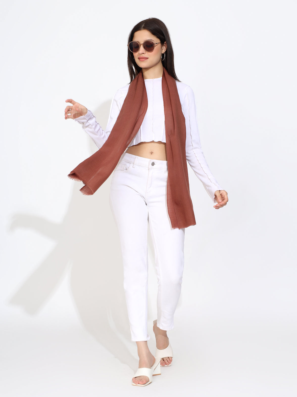 Pashmina Wool Diamond Weave Muffler Brown - 40x180 cms / Brown