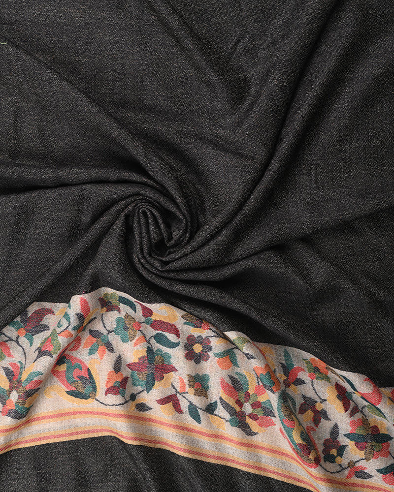 Black Pashmina Wool Gulab Palla Shawl for Women – Soft Lightweight Luxury Winter Wrap