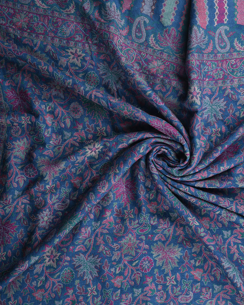 Step into luxury with the Pashmina Wool Kani Shawl in Blue. Crafted with meticulous Kani weaving, this shawl is a masterpiece of fine detailing and warmth. The rich blue shade enhances its regal charm, making it an essential part of your wardrobe.