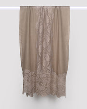 The Beige Pashmina Wool Eye Design Lace Stole is a feminine and elegant piece that enhances any outfit.