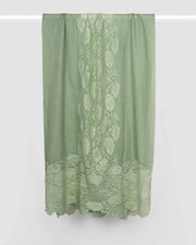 The Green Pashmina Wool Eye Design Lace Stole is a vibrant and eye-catching piece, perfect for festive occasions.