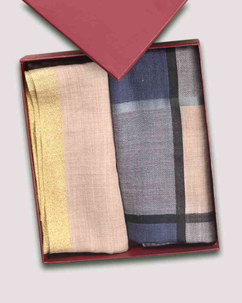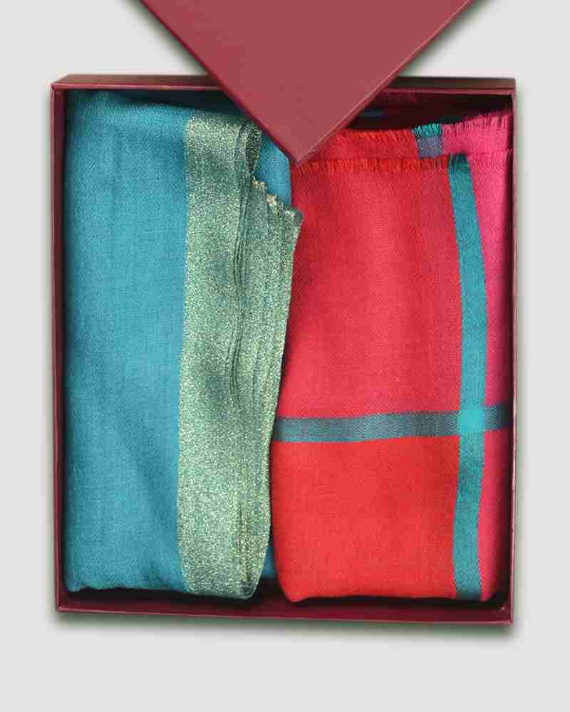Make a bold statement with the Red Fine Wool Shining Lace Stole & Brown Fine Wool Diamond Ombre Muffler Combo. This premium set features a luxurious stole with intricate lace details, paired with a rich brown ombre muffler for added warmth and style. Whether for casual outings or formal gatherings, this combo is an essential addition to your collection.