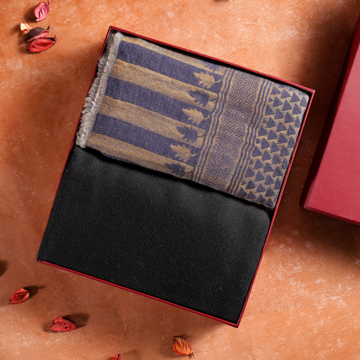 Women's Blue Pashmina Wool Self Zari Diamond Stole & Men's Lambswool Plain Stole – Luxury Winter Gift Set